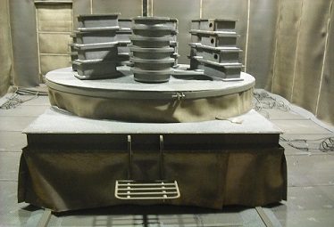 砂料储存在喷砂主机的喷砂罐内,当进行喷砂作业时,喷砂罐上的组合阀动作,将喷砂罐上的封砂托顶起、喷砂罐充压;同时,喷砂罐下面的砂阀打开、助推阀打开;由于喷砂罐充压,强行将砂料从砂阀的进砂口压出到出砂口,通过助推气流,将砂阀出砂口的砂料加速;加速后的砂料气流混合流通过喷砂管至高速喷砂枪并在高速喷砂枪内,进一步将砂料加速(助推气流加速至超音速);被加速的砂料以很高的速度喷射到被处理工件的表面,实现喷砂作业的表面清理及强化目的。 | 风力回收喷砂房室外的气流经喷砂室两侧的百叶窗进入喷砂室内,之后通过喷砂室顶部的匀流板进入喷砂内的喷砂工作室,在喷砂室的横断面形成自上而下的气流,把喷砂室内的砂料、粉尘、清理物等通过蜂窝式吸砂地板进入磨料分离系统中,通过磨料分离器、将磨料及粉尘污物分开,有用的砂料进入喷砂罐内继续循环使用,粉尘及污物则随气流进入除尘系统内,经过除尘系统的过滤、干净空气排入大气,粉尘及污物则储存在粉尘筒中等待定期清理。 |