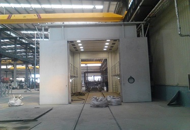 九通风力回收喷砂房双层骨架采用优质型钢,并经喷砂、防锈、底漆涂装处理,外面采用75mm厚彩钢夹心板,外形美观、结实可靠、防腐耐用、保温隔热、消音效果好(500HZ以下);房内四周全部安装耐磨橡胶板或≥2mm锰钢板防护,有效保护房体;可根据客户要求及工件尺寸来设计房体大小,满足多工艺需求!在喷砂房内可设置固定喷砂平台,方便作业;喷砂房物流门可定制化,如电动对开门、手动对开门、柔性门等,客户可自行选择;如有小工件喷砂,建议使用柔性门,小工件柔性门关闭,大工件打开,可节省耗能,也改善作业环境。 | ![]() |