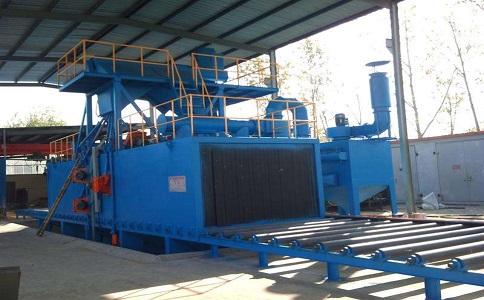 抛丸清理室设备简述: 本设备用于构件产品涂装前的喷丸除锈,从而去除工件表面锈垢和氧化皮,使之获得一定粗糙度的洁净金属表面,消除产品结构件的焊接应力,增加漆膜附着力,提高工件的表面质量和防腐效果。