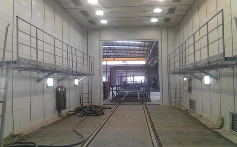 钢结构件机械式喷砂房设计依据:工件名称:钢结构件 2.最大工件尺寸:15000×1000×1500mm 3.工件最大重量:10000kg 4.工作制度: 260天/年,8小时/天,单班生产; 5.工件产量: 8件/天; 6.输送方式:台车;