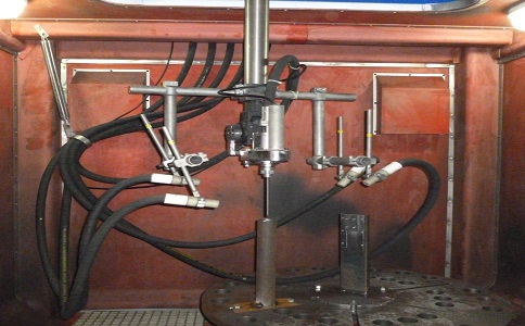 航空发动机零件自动喷丸强化设备喷丸压力调控系统 本机釆用意大利18000 l/min电控比例减压阀,由监控系统闭环电调控制,确保工作时喷丸压力稳定。 可控闭环压力范围:0.05-0.7MPa 控制精度:≤±1% (满刻度);四轴数控机械手及喷嘴 X轴(水平移动) 行程900mm 定位精度≤0.2mm 重复定位精度≤0,1mm Z轴(垂直移动) 行程900mm 定位精度≤0.2mm