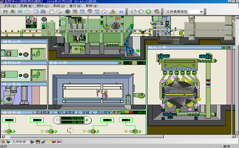 钢板预处理 涂装生产线 上位机动态模拟监控系统(监控中心) 整个设备采用上位机动态模拟监控系统(如下图 监控中心),以便能够 监视全线的工作状态, 对全线实行优化控制。采用动态模拟监控系统大大提高了系统的机电一体化水平,并且使系统从一套“黑箱”系统变成可视并且便于操控的系统。