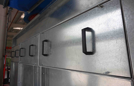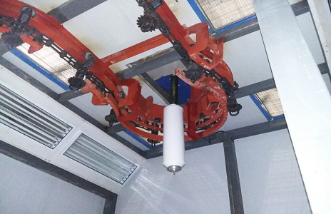 采油树天然气喷涂生产线喷漆房工作原理:喷漆时,外部空气经进风口初、中效过滤棉过滤后由送风机送入到喷漆房内静压室,再经静压室二次过滤分流后进入漆房作业空间,气流在工件周围形成风幕。这时漆房内有载风速可达0.40m/s以上,喷漆时产生的漆雾不会在操作者呼吸带处停留,而随气流迅速下降,之后在排风机的作用下,