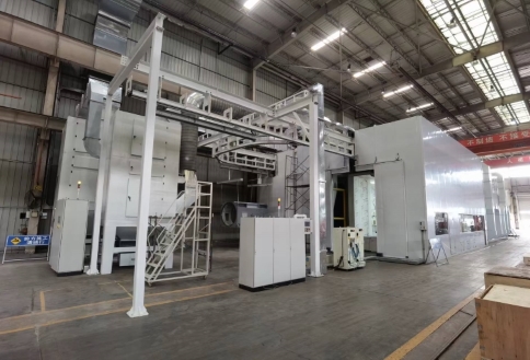 涂装喷粉线工艺流程分为:前处理、喷粉涂装、加热固化。前处理有手动简易工艺和自动前处理工艺,后者又分自动喷淋和自动浸喷两种工艺。工件在喷粉之前必须进行表面处理去油去锈。