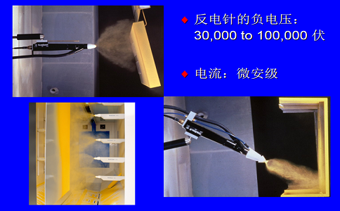 所谓粉末静电喷涂就是利用高压静电电晕电场的原理。在喷枪头部金属导流标上接上高压负极,被喷涂工件接地形成正极,使喷枪和工件之间形成一个较强的静电电场。