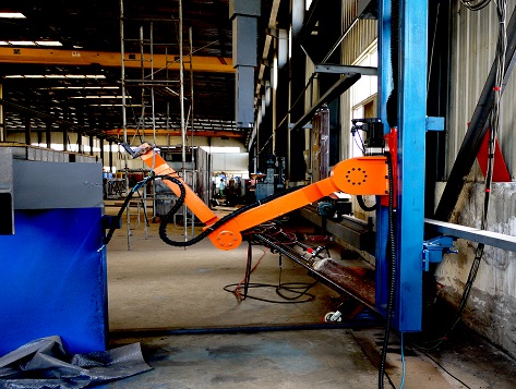 标准六轴喷砂机器人汽车、轨道车辆、客车、专用车、变压器、风电、工程机械、机床、大型石化装置、船舶等关键零部件和机械基础件的前期 喷砂房 喷砂除锈,侧壁喷砂机器人往往成对布置,在工件的一侧各布置一台。